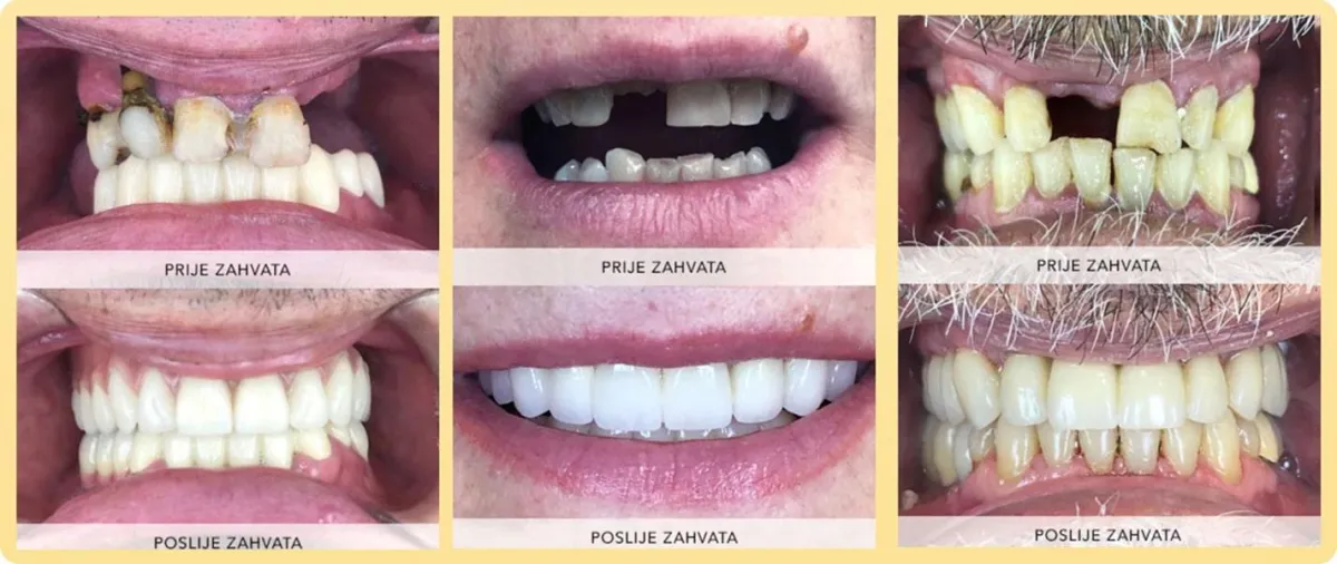 Pogledajte stvarne primjere pacijenata koji su došli bez jednog ili više zuba, a danas ponovno jedu, smiju se i žive bez ograničenja.